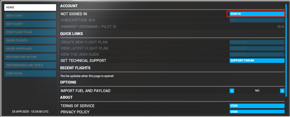 注意,使用FlyPad的SimBrief,需要将辅助关闭: