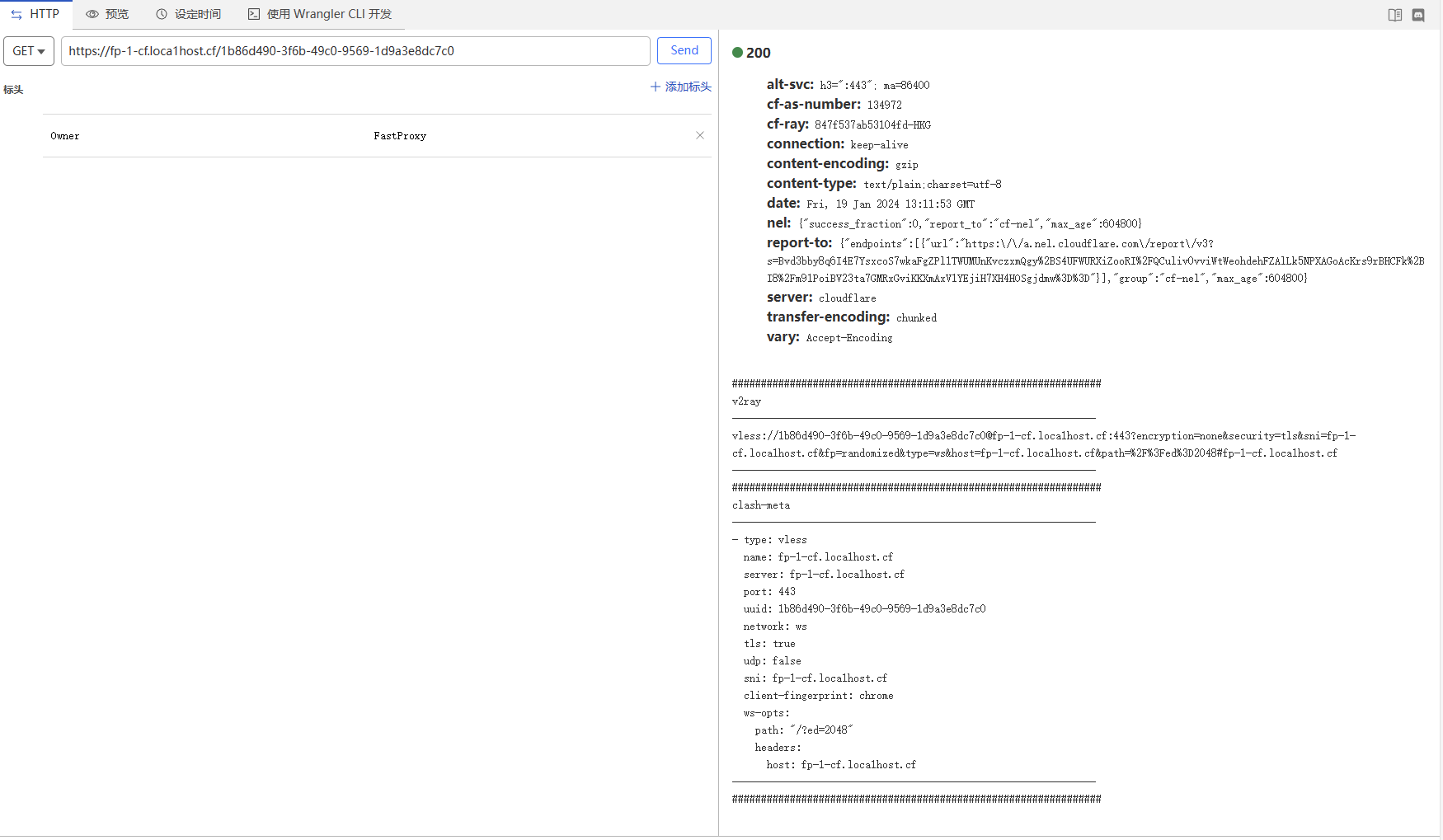 首先获取链接,请求对应的UUID路由,附带请求头,即可得到一串VLess: