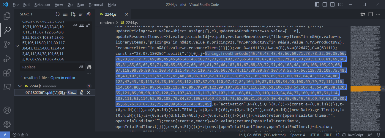 使用VSCode打开dist文件夹,全局搜索: